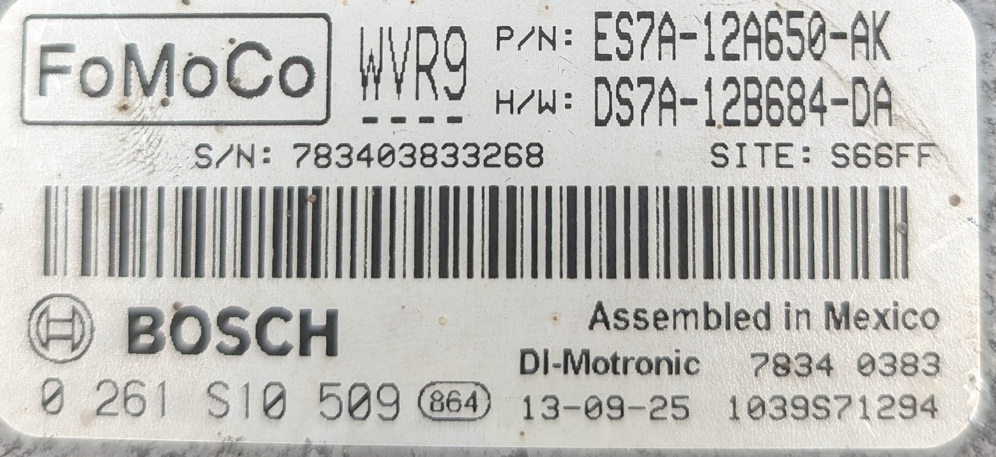 Used 2014 Ford Fusion FoMoCo ES7A-12A650-AK ECU 0261S10509